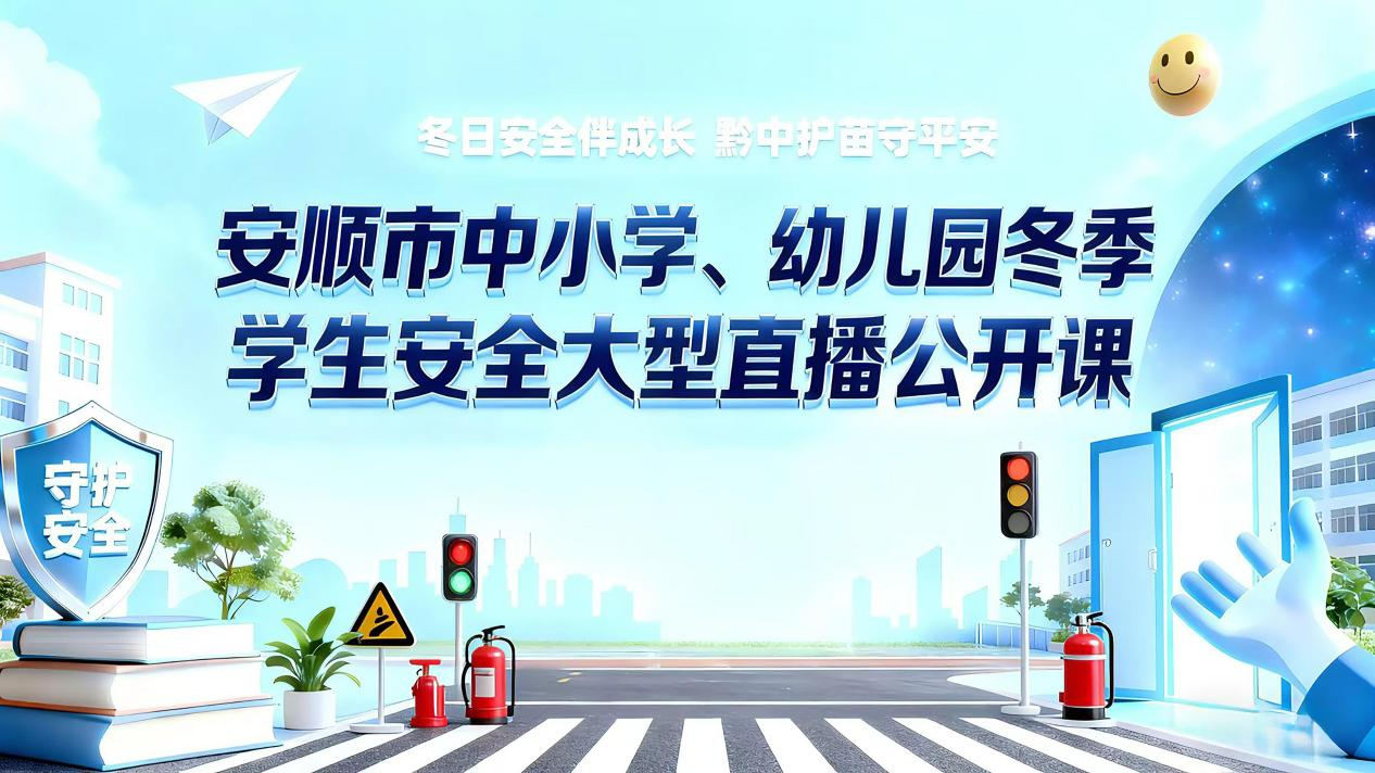 为深入贯彻落实教育部及贵州省教育厅关于冬季校园安全工作的系列部署要求,牢固树立“生命至上、安全第一”的发展理念,切实筑牢冬季校园安全防线,保障全市中小学幼儿园学生健康成长,由安顺市教育局、安顺市公安局、安顺市消防救援支队、贵州广播电视台《美育贵州》栏目联合主办,安顺市第一高级中学、安顺市第六中学、安顺市若飞小学承办,上海汇中保险经纪有限责任公司、安顺市供电局、安顺市西秀区人民医院协办的冬季学生安全大型直播公开课,将于2026年1月10日19点正式开播。