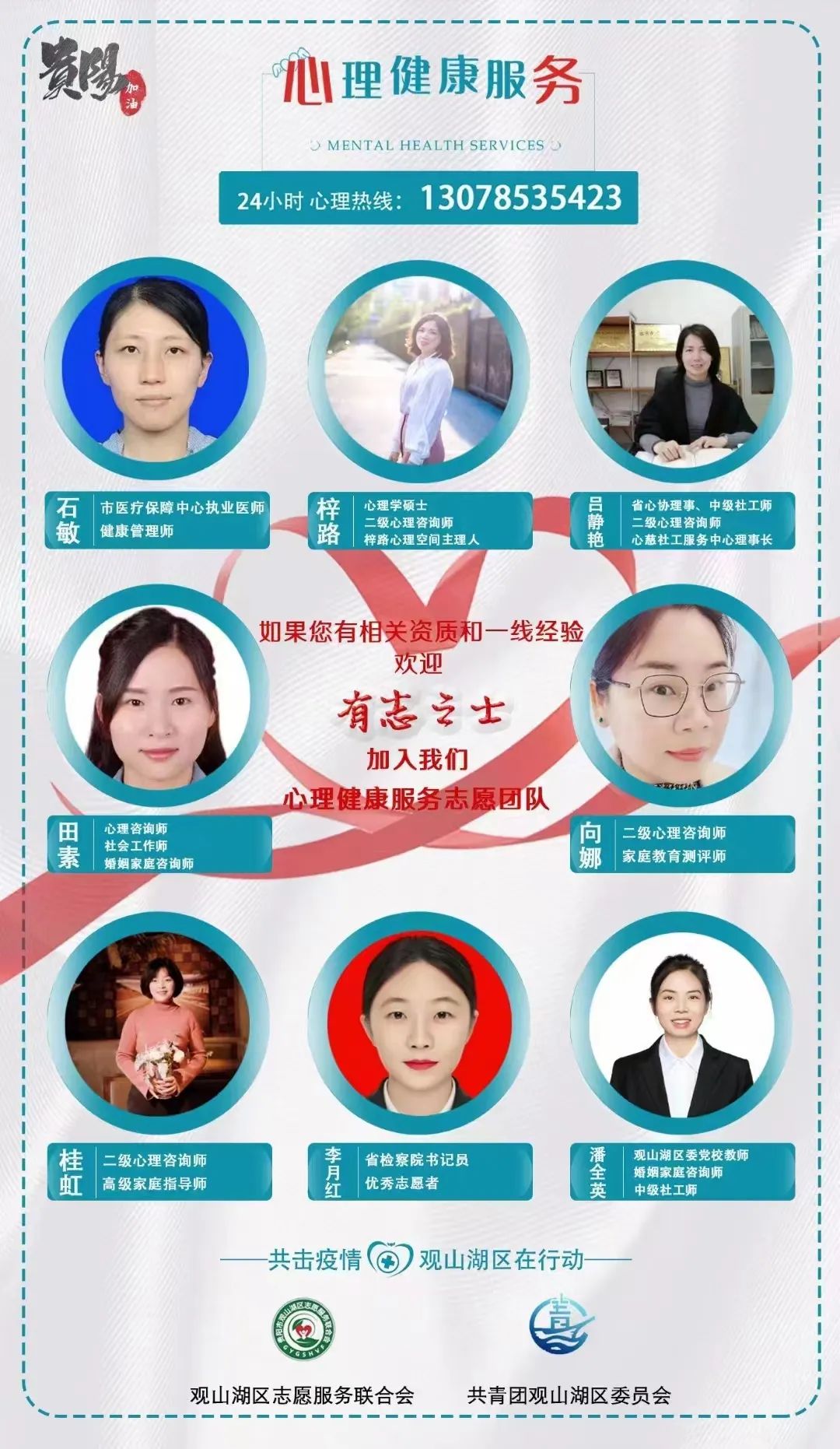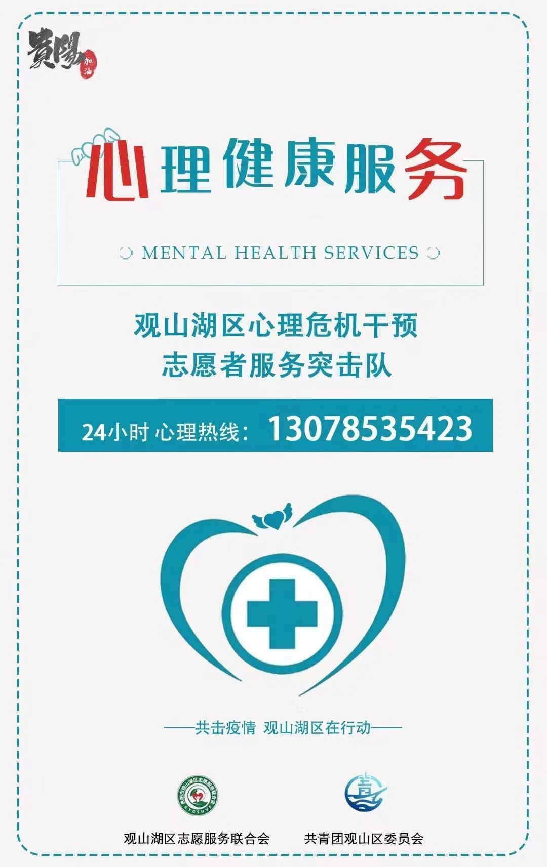 突如其来的新冠肺炎疫情是否让你感到焦虑、不安、恐惧?由共青团观山湖区委、观山湖区志愿服务联合会共同组织的观山湖区心理危机干预志愿者服务突击队已经投入到工作当中,有任何需要心理援助的问题,欢迎来电!