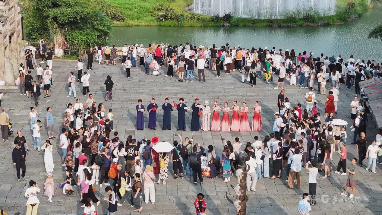 在营造氛围的同时,各地还积极丰富文旅供给,通过快闪歌舞、烟火表演等节目,打造沉浸式节日场景,让市民游客在喜庆祥和的氛围中欢度佳节。