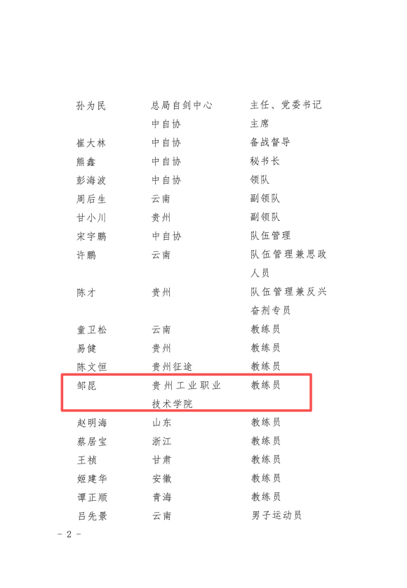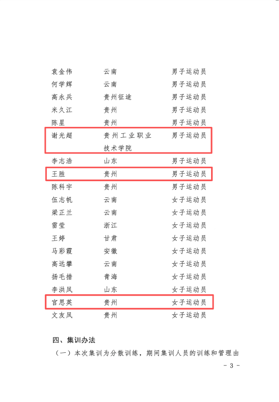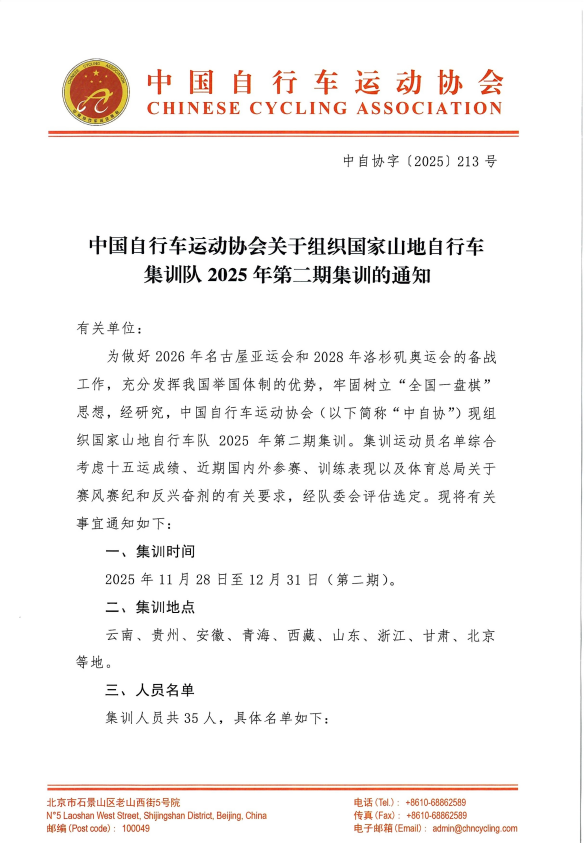 近日,中国自行车运动协会发布集训通知,为备战2026年名古屋亚运会与2028年洛杉矶奥运会,组建国家山地自行车集训队2025年第二期集训队。贵州工业职业技术学院3名学生,1名教师入选35人集训名单,为学校体育教育再添荣光。