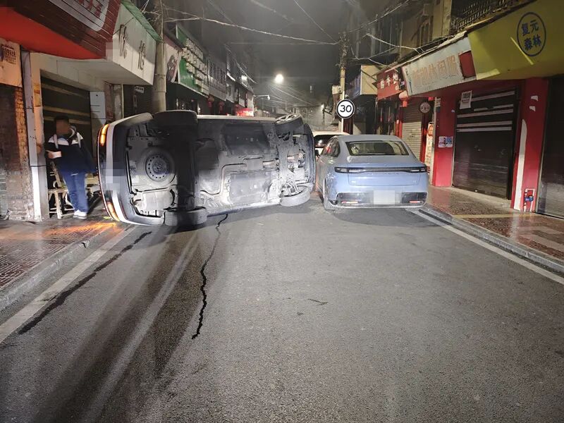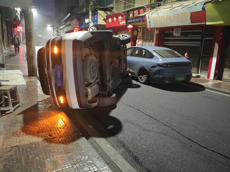 到达现场后,只见一辆贵F76XXX号小型普通客车侧翻在道路中央,旁边停放着另一辆被剐蹭的小型轿车。