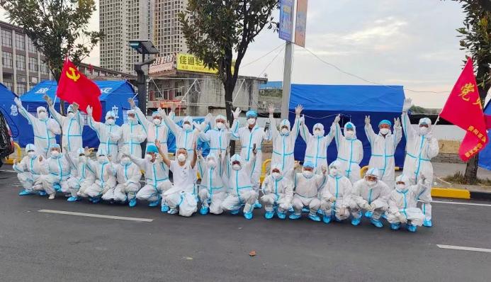 截至采访时,作为党员的赵辉带领突击队员们,已经在距离石板镇物流园50米远的驻地驻守一周了。