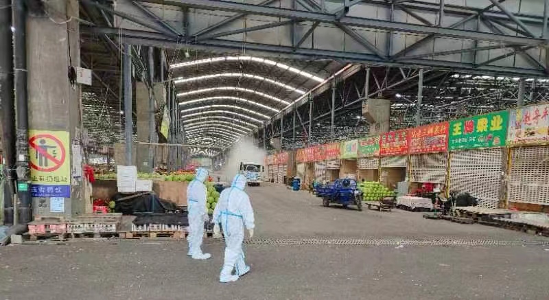 作为突击队的一员,赵辉已两次进入石板镇物流园完成消杀工作。2019年,京溪公司也曾承担过将军山医院的外围环卫保障工作,如今进入“红线区域”消杀,突击队员加倍仔细,不放过任何角落。