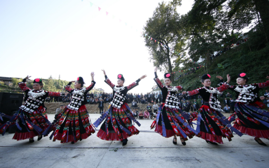站在翁井村山头凌空远眺,青山环绕着“田园翁井”,清澈的白岩河穿村而过,苗族群众们的表演现场热闹非凡,笑声、掌声此起彼伏。