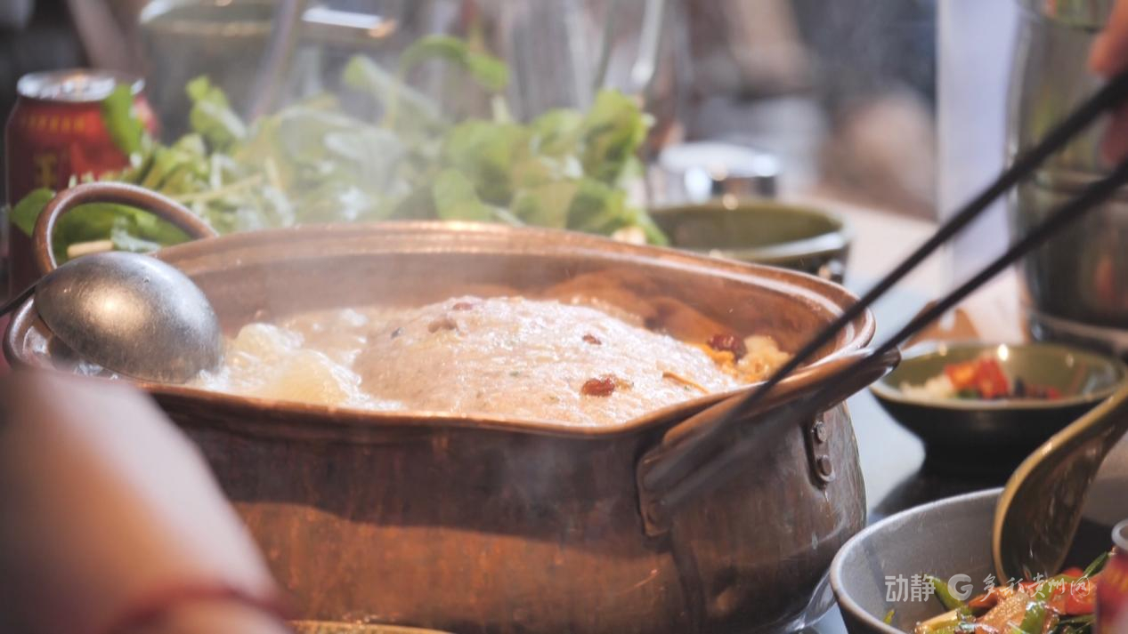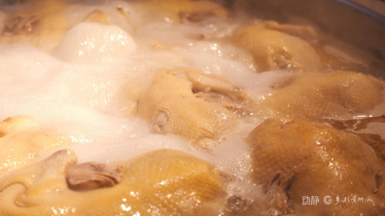 “肉的比例一定要很精确的,8分的瘦肉,2分的肥肉,必须打够时间,肉质要紧。还有马蹄菜,口感清香脆。国庆期间一天起码要顿三锅,一百多只鸡。”龙里县聚龙堂厨师张勇说。