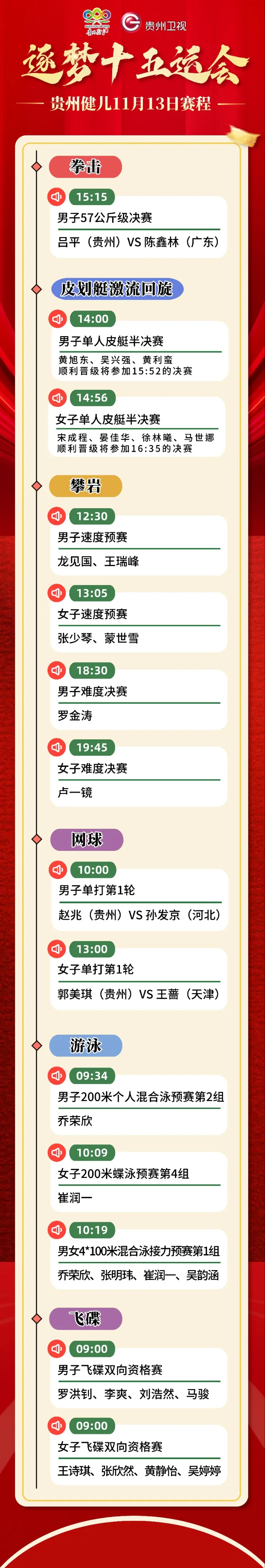 第十五届全运会今日赛程精彩来袭!一起期待贵州运动健儿们的出色表现!