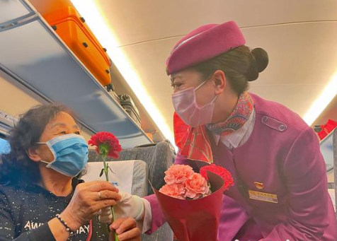 在“三八”国际劳动妇女节前夕,中国铁路成都局集团有限公司贵阳客运段动车二队在G2690次列车上,开展了“多彩女神节”主题特色活动,邀请现场女性乘客一同庆祝节日。