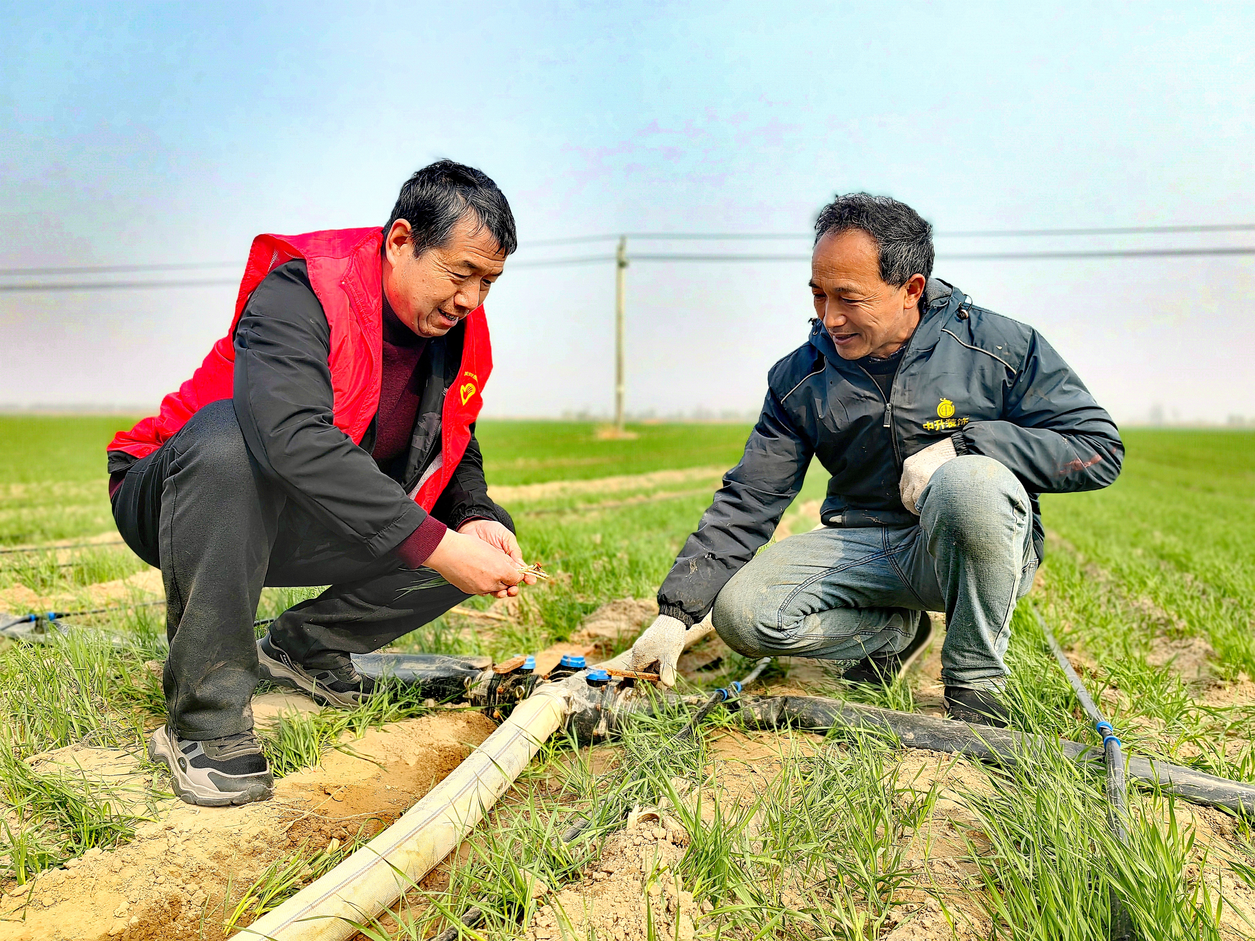 3月12日,农业技术人员在黄河岸边的麦田里现场技术指导。邢博 摄