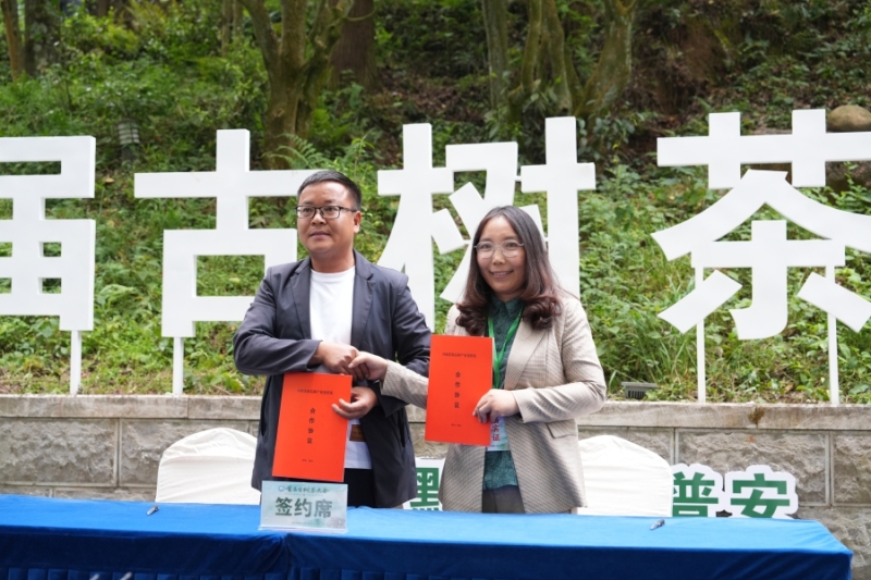 贵州省人大常委会原党组书记、副主任、省茶叶协会会长慕德贵,中国农业国际合作促进会、贵州省农业农村厅、黔西南州及普安县等相关领导,贵州大学党委书记杨未、副校长陈祥盛出席。会上,普安县与贵州大学签订《贵州大学-普安县校地合作协议》与《普安四球茶新品种产业化转化合作协议》,转化经费1500万。