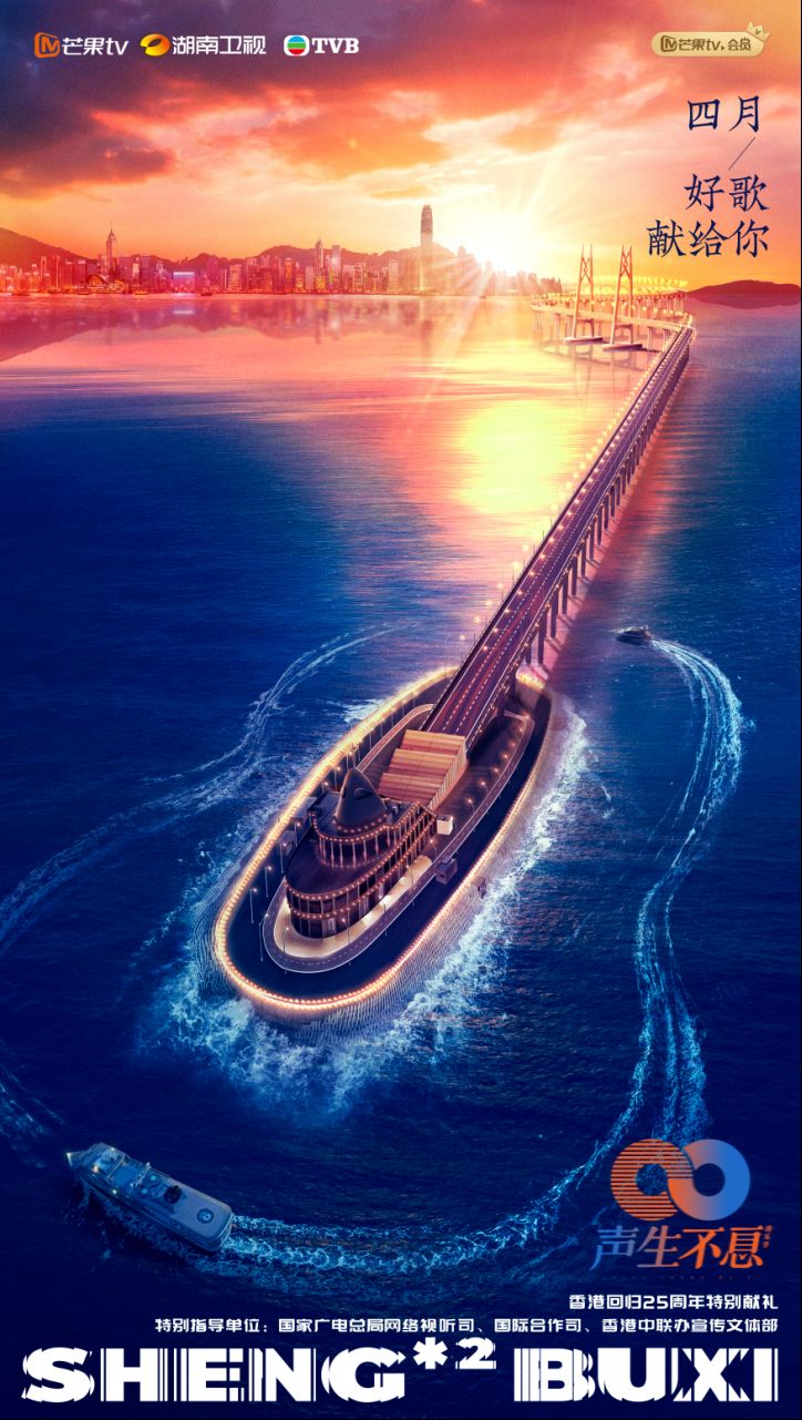 在节目释出的概念海报上,以港珠澳大桥为主体,香港维多利亚港映入眼帘,轮船驶过的水波勾勒成吉他的形状,蜿蜒的桥梁连接了香港和内地,将乐器与大湾区巧妙结合,宛如吉他琴弦的形状仿佛也代表着港乐将两地人民连接在一起。朝阳之下的大湾区,香港与内地同根同源,同舟共济,两地生生不息的音乐交流和文化传承。港乐是一座无形的桥梁,为两地文化交流提供更多机会,打开更多可能。随着16组歌手阵容的揭晓,《声生不息·港乐季》的面纱也逐渐拉开,传奇歌手与新生代通过音乐对话交流,“传奇国货”绽放时代新风采!