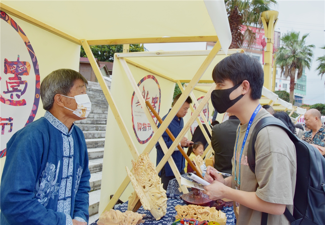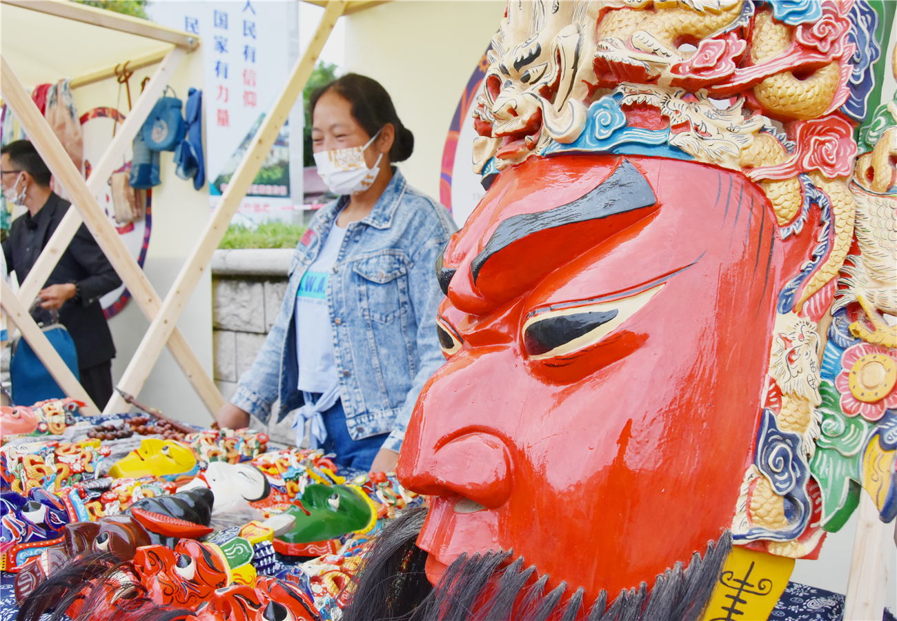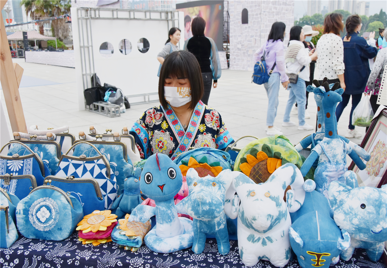 现场还举办了非遗购物节,蜡染、面具、屯堡银饰、剪纸等精美的传统文创产品吸引了市民观看。