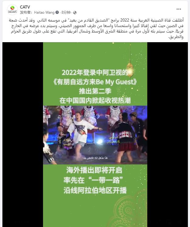 正值第三届“一带一路”国际合作高峰论坛刚刚落下帷幕,由贵州卫视原创的国际传播轻综艺系列节目《有朋自远方来(Be My Guest)》第二季——“摩登贵州”于本周日播出收官之作,接下来,即将开启海外播出,并率先在“一带一路”沿线阿拉伯地区开播。