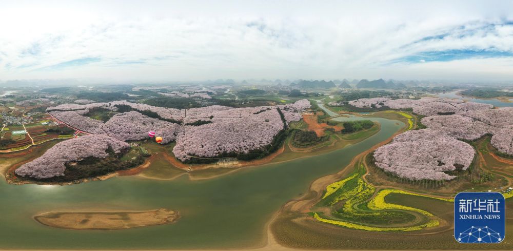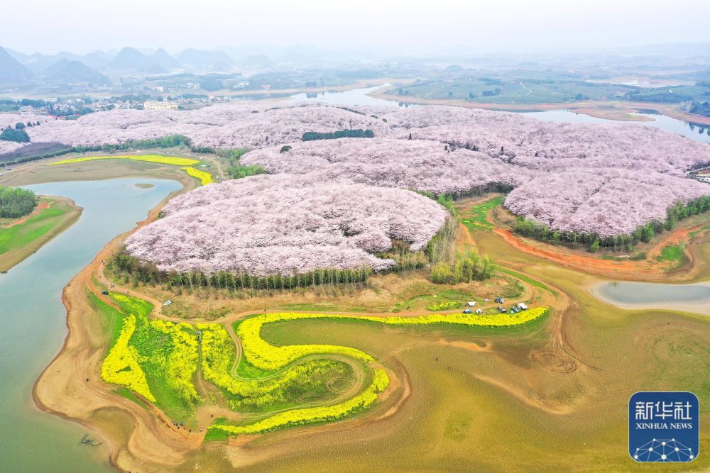 近日,贵州省贵安新区樱花园内的2.4万亩樱花竞相绽放,如雪似霞,吸引游客前来赏花观光。