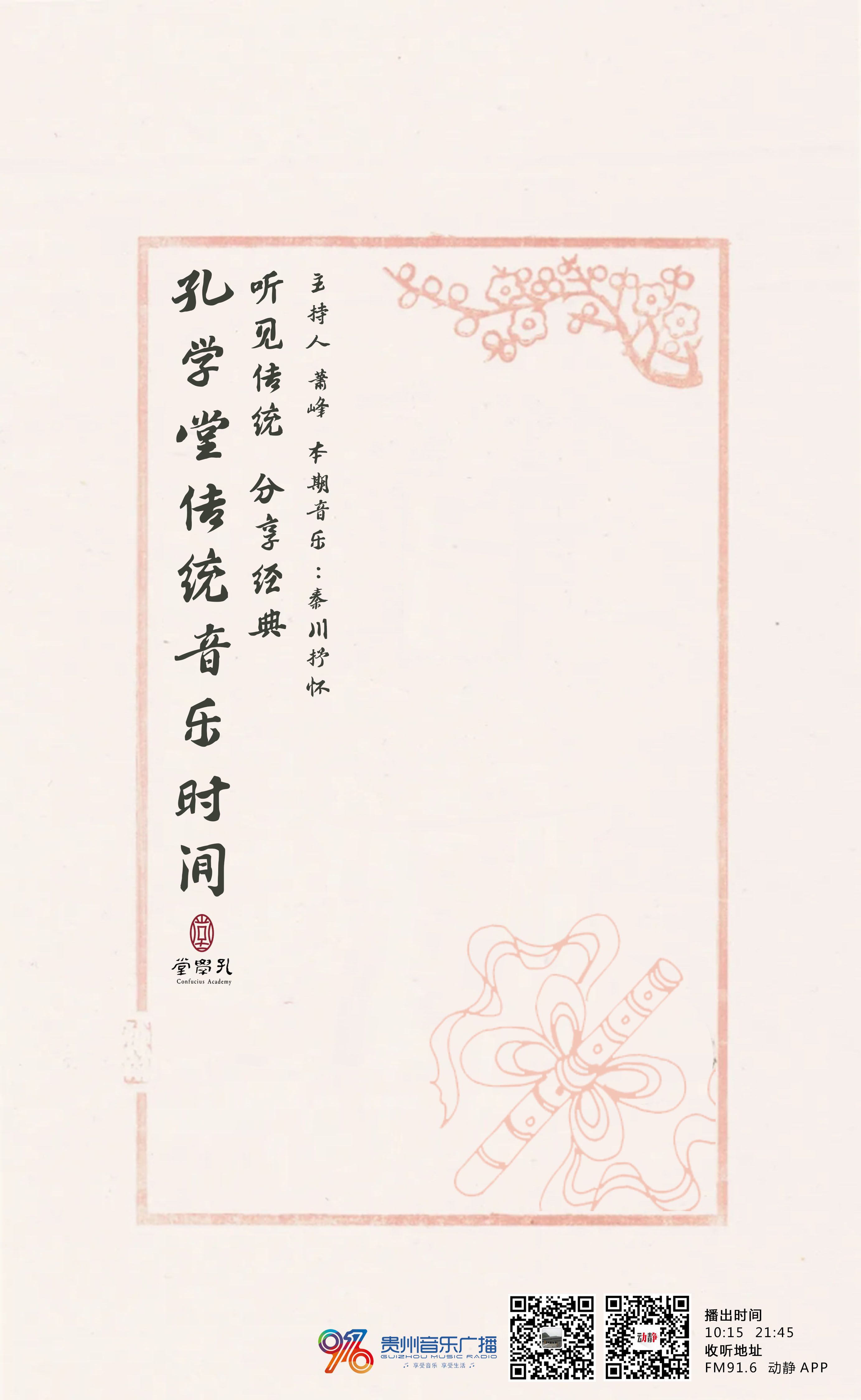 《孔学堂传统音乐时间》是一档由贵阳孔学堂文化传播中心和贵州广播电视台音乐广播共同打造的高品质传统音乐节目。