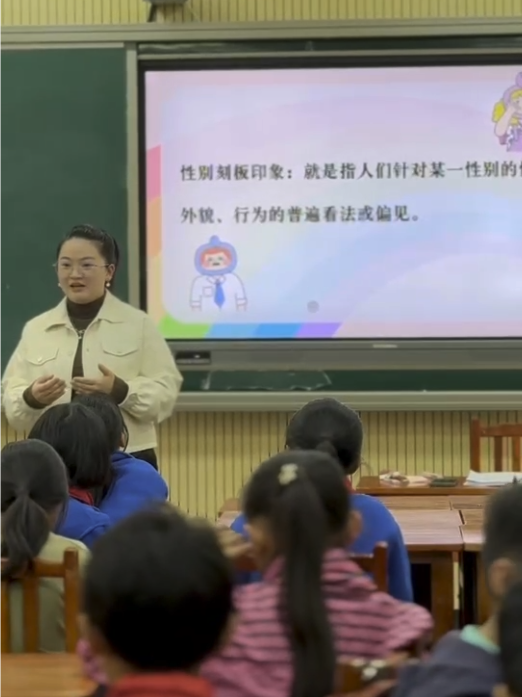 苏苏正在为小学生讲授何为“性别刻板印象” 图源/刘玉
