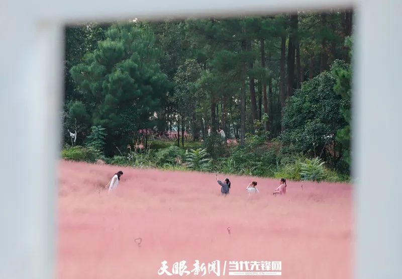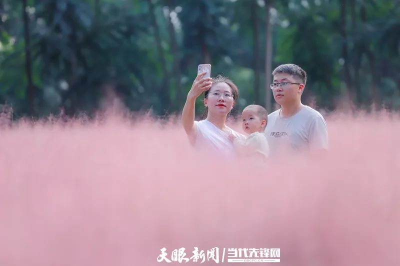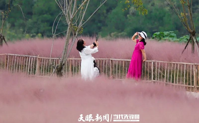 粉黛丛中,游人纷纷占住最佳角度驻足欣赏,将这份美景尽收眼底;或是拿出手机,定格这一瞬的美好,让粉红世界更加生机勃发。