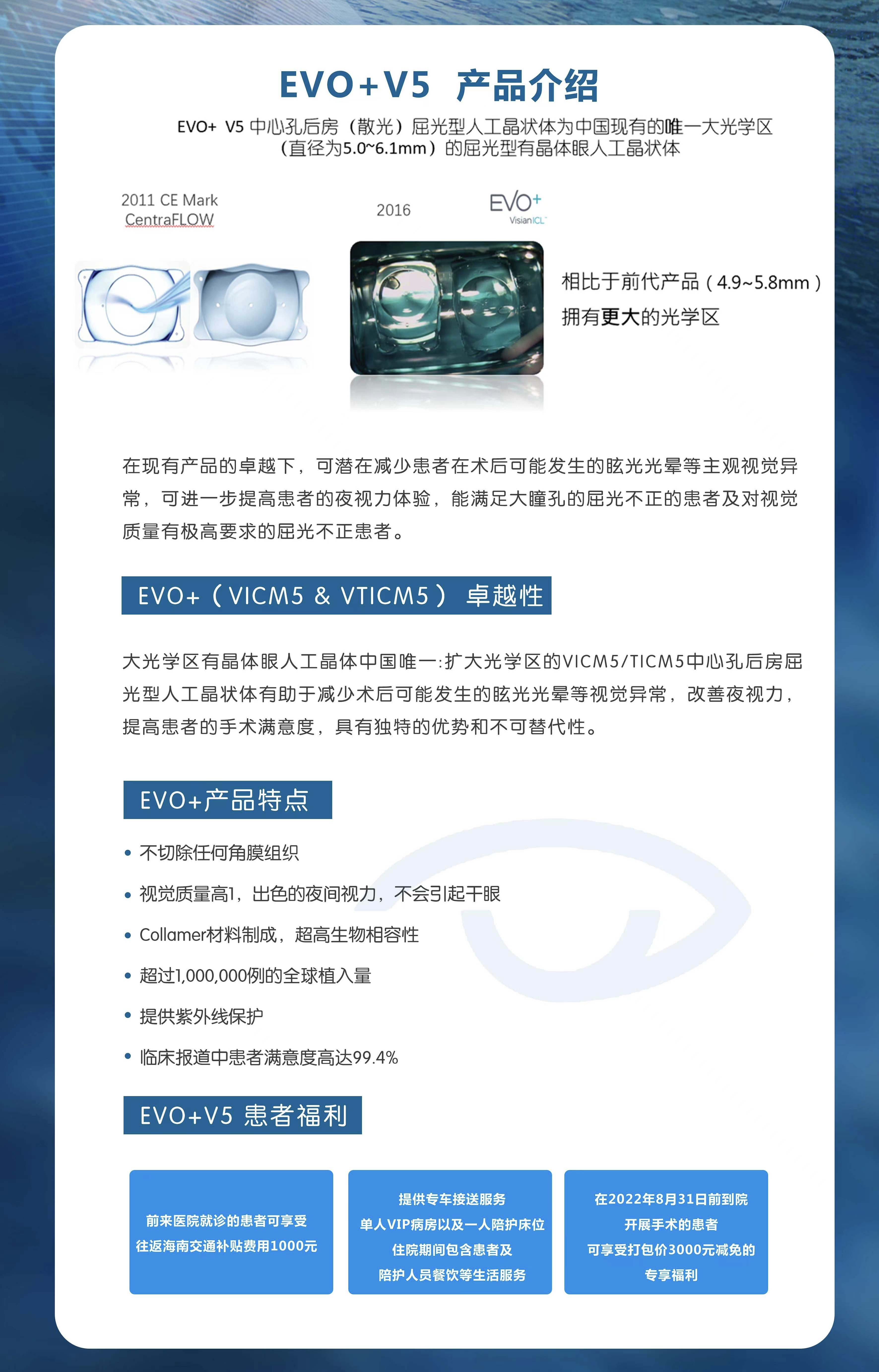 目前,国内应用的主流的ICL晶体是V4C近视矫正晶体,ICL晶体新成员EVO+ VisianICL(V5)晶体的诞生,在现有产品的卓越下,其拥有更大光学区,也更加柔软,有助于减少术后可能发生的炫光光晕等视觉异常,能够给患者提供更好的术后视觉质量和夜间视力,具有独特的优势和不可替代性。