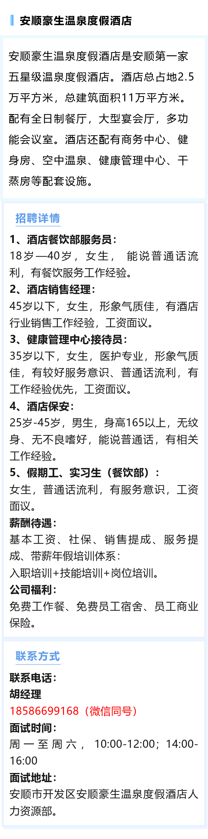 五星级温泉度假酒店招聘!有假期工、实习生(餐饮部)岗位!免费工作餐!免费员工宿舍!
