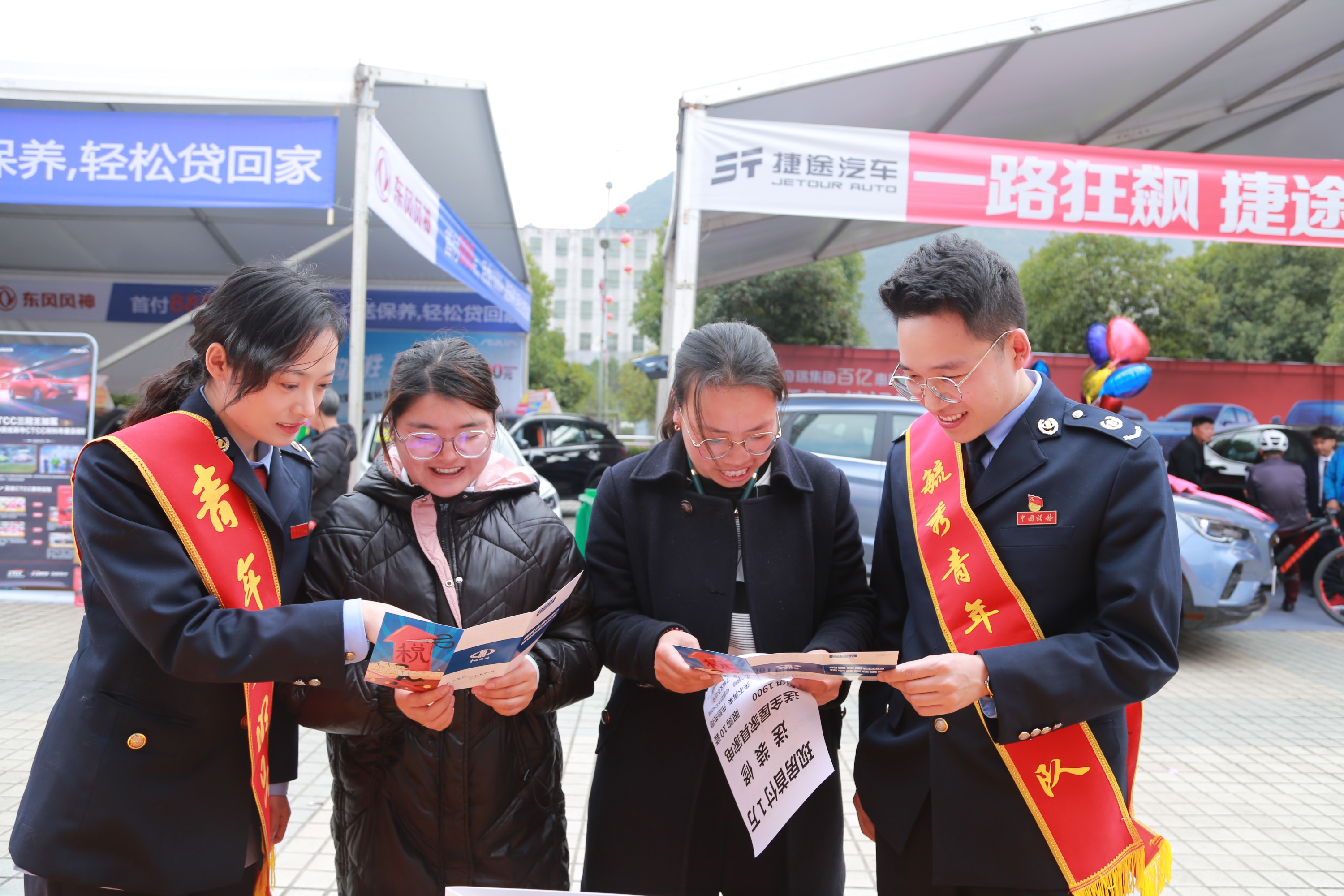 图为税务人员向纳税人发放税费优惠政策宣传资料