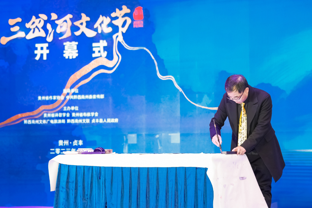 吴嘉甫在发言中说,来自全国各地的诗人、作家、书画家们要以举办“三岔河文化节”系列活动为契机,通过采风、交流、研讨、创作,诞生出一批以贞丰为题材和背景的文艺精品,自觉承担起“举旗帜、聚民心、育新人、兴文化、展形象”的使命任务,唱响主旋律,弘扬正能量,为繁荣新时代文化艺术事业作出应有的贡献。要以“铸牢中华民族共同体意识”为主线,挖掘、整理、宣传各民族交往交流交融的历史事实,树立正确的国家观、历史观、民族观、文化观等,让铸牢中华民族共同体意识植根心灵深处,营造一个讲政治站位、讲国家大局、讲民族团结、讲学术精品的研究环境,不断为贵州以及布依族地区中国式现代化建设提供坚实的学理支撑。
