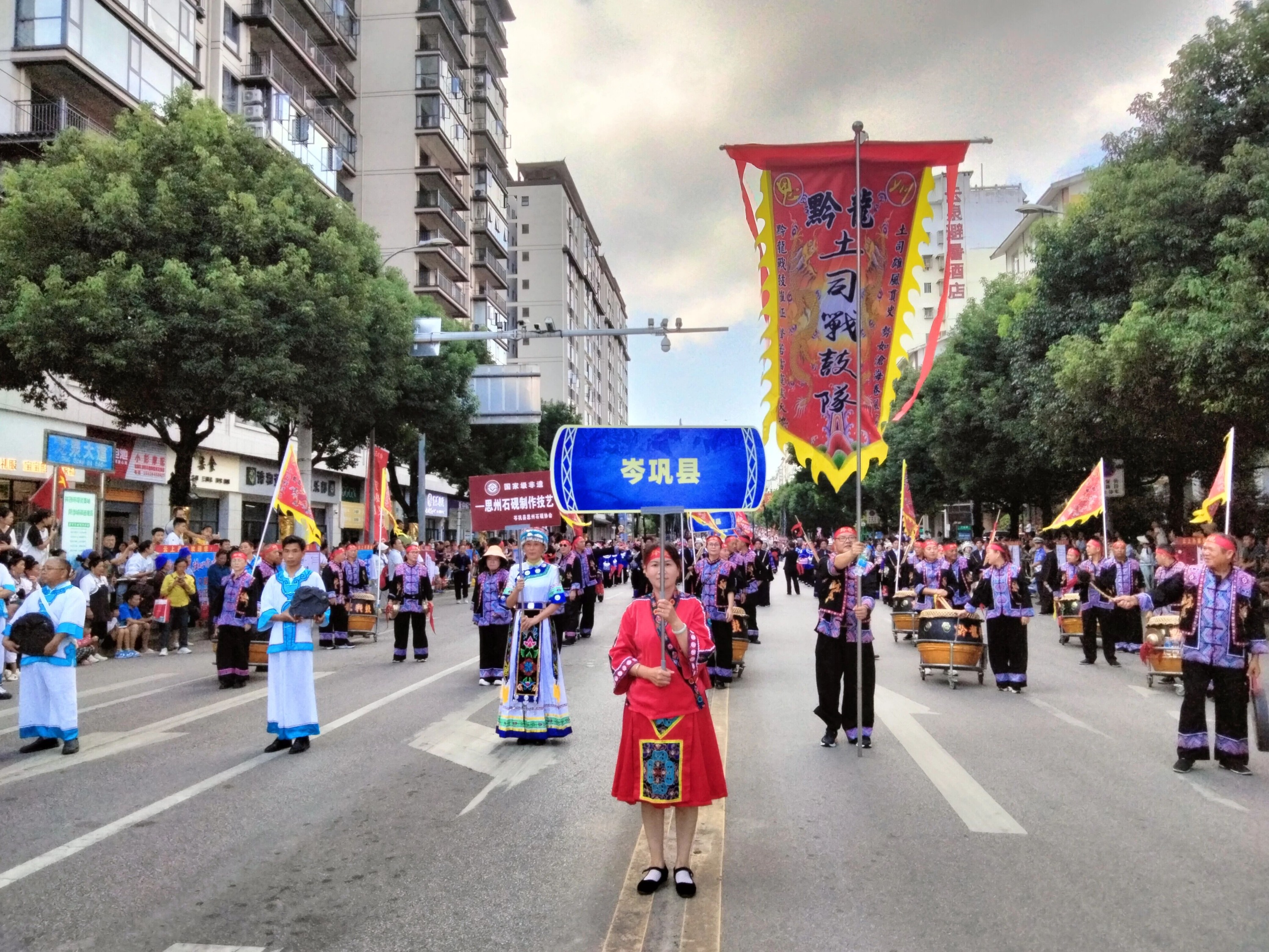 9月20日,在贵州丹寨万达小镇,一场非遗视觉盛宴震撼上演。由第三届中国非物质文化遗产保护年会暨第四届丹寨非遗周系列活动举办的非遗巡游展演活动盛大开启,吸引了上万市民和来自全国各地游客共赴这场文化盛会,沉浸式感受非遗魅力。岑巩县身着土家服饰携省级非遗项目思州战鼓与国家级非遗项目思州石砚参加巡游,成为巡游展演中的一大靓点。