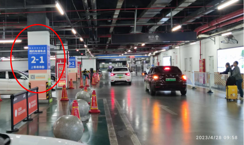 三.搬迁至西广场地下二层停车场的网约车上客区已完成通道建设和引导标志、标牌布设,提醒网约车驾驶员注意行车安全和规范运营。