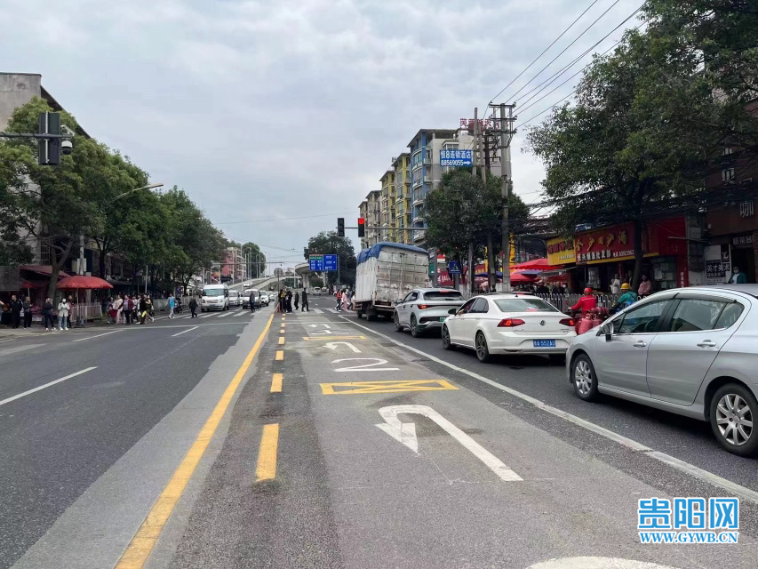 ▲5月12日,贵阳市首条“多车串联掉头”通道在南明区富源南路二戈寨投入使用。需要在该路口掉头的车辆,应注意观察路面标志牌和标线的引导,在路口按掉头车位顺序排队等候,同时要严格按照交通控制信号的指示进行掉头。详情