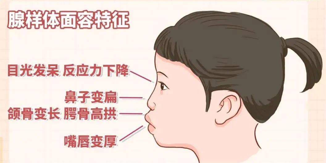 长期打鼾会引起儿童生长激素分泌不足,导致孩子烦躁、疲劳、多动、注意力不集中而影响性格发育和学习;身体发育迟缓或过度肥胖;免疫力降低,容易生病。长期的鼻塞、张口呼吸会出现“腺样体面容”,影响孩子的颜值。