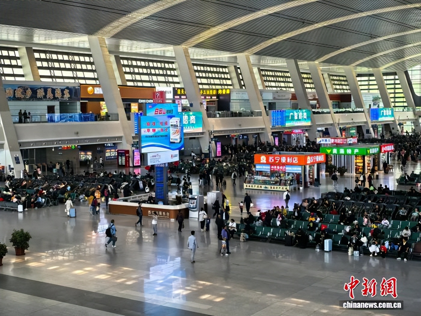 图为旅客在西宁火车站候车大厅内候车。