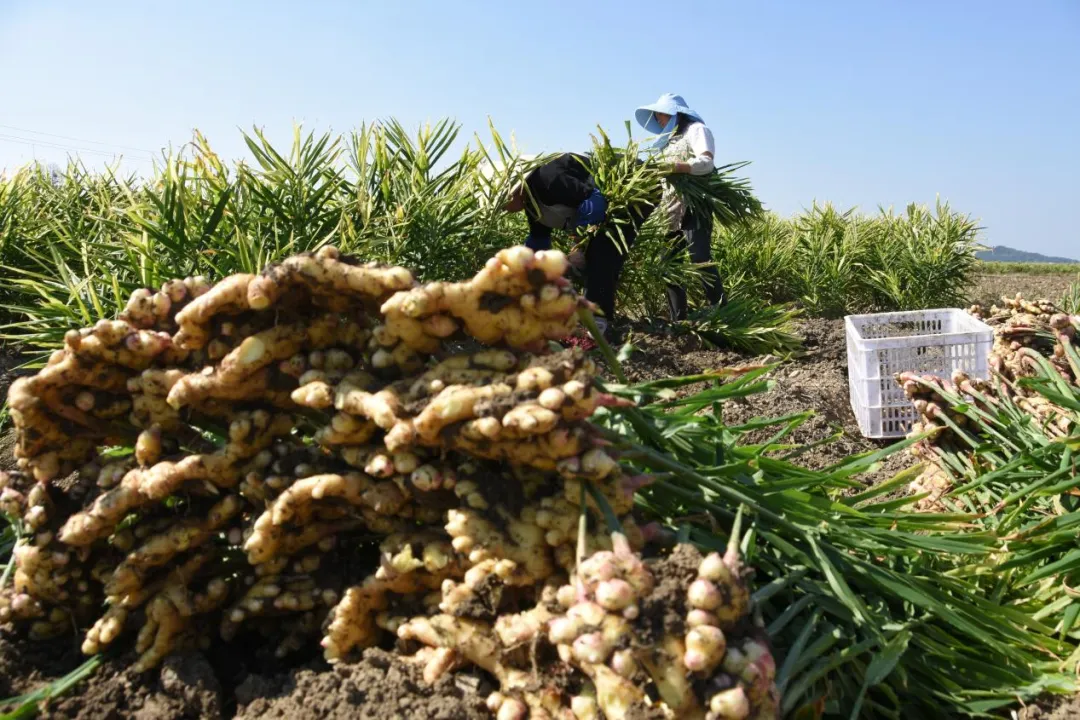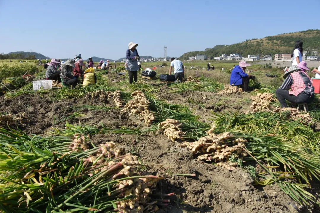 走进种植基地,浓郁的姜香味扑鼻而来。100多名务工群众忙着拔姜、剪枝、打包装箱,田间地头到处洋溢着丰收的喜悦。