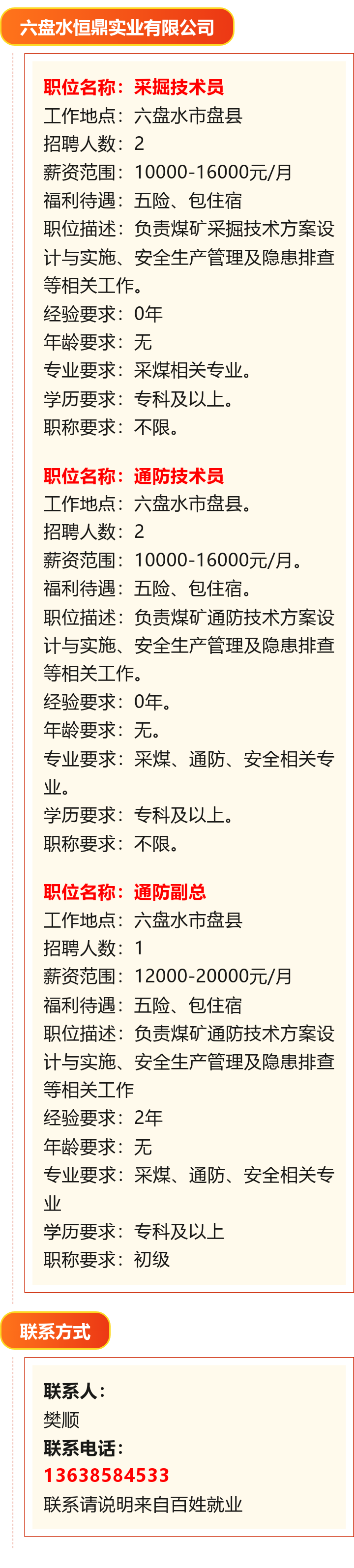 月薪10000~20000元!招聘采掘技术员、通防技术员等岗位!