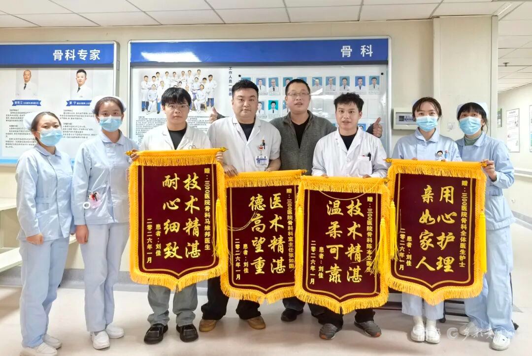 如今,刘老师康复进展顺利,重返讲台指日可待。四面锦旗,是医患同心的最好见证,也诠释了三〇〇医院骨科“以技术守护功能、以仁心温暖患者”的初心。