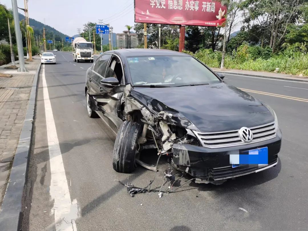 进一步了解得知,韦某驾车从甲良镇往县城家里开,途经事故路段时,突然听到一声“砰”的一声巨响,紧接着车辆失控,冲出路面,向路灯杆撞去。待韦某下车查看时,原来是右侧前轮胎爆胎,才导致了这次事故的发生!