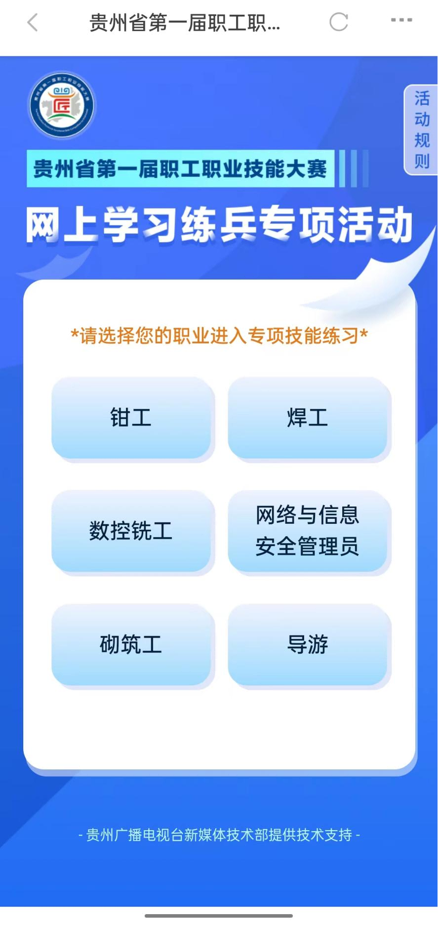 本届大赛集赛、展、演相结合,自大赛启动以来,在全社会广泛开展了大赛logo征集、“我有一技之长”短视频展播、“网上学习练兵”等系列活动,充分展现了新时期贵州产业工人队伍风采,营造了良好的技能文化氛围。