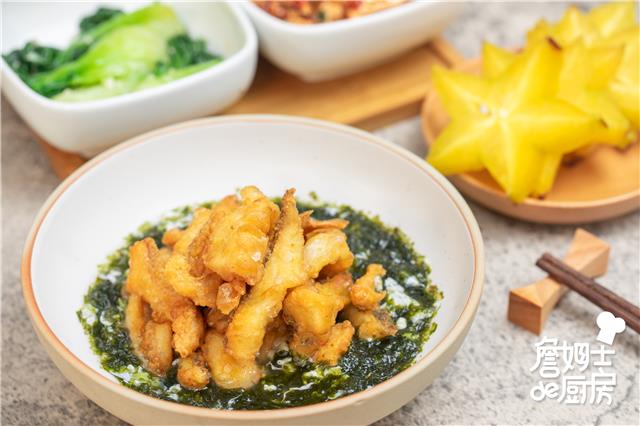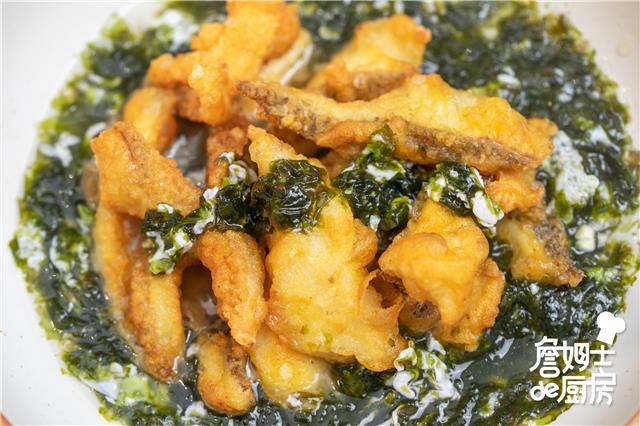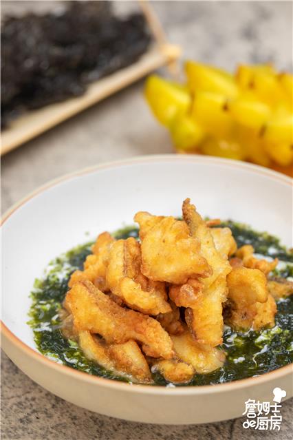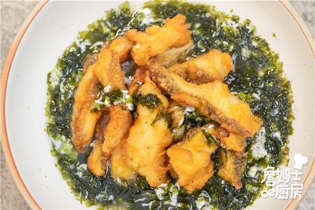 外酥里嫩的鱼柳挂着昆布、海苔制作的烩汁,海味之鲜在味蕾绽开,浓稠的烩汁-酥脆的外壳-嫩滑的鱼肉,里里外外多层的口感更是唇齿之间最美妙的体验!