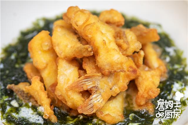 要形容这道菜的味道,就一个字——鲜!鲈鱼本身肉质洁白鲜嫩,詹姆士又用了蛋黄来腌制,这种做法与常见的蛋白腌制不同,不仅起到嫩肉、挂浆的作用,还将鱼的滋味提升了一个层次!