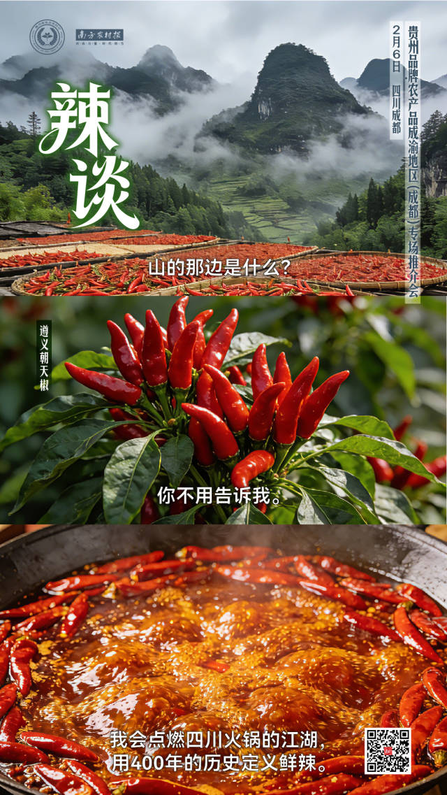 贵州优质农产品将于2月6日在成都举办推介会,带来都匀毛尖、关岭黄牛等特色年货。活动通过厨艺比拼、火锅地图发布等形式,展示贵州食材与四川美食的融合潜力。贵州酸汤、野生菌菇等"宝藏食材"将为川味火锅增添新风味。现场还将举办产销签约,推动贵州特产进入四川市场。诚邀成都市民体验"黔川双锅"盛宴,感受别样年味。