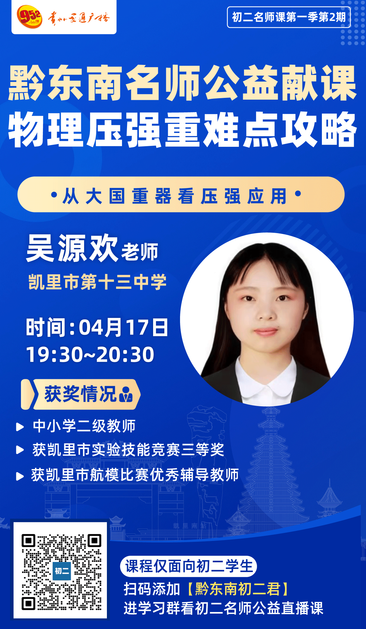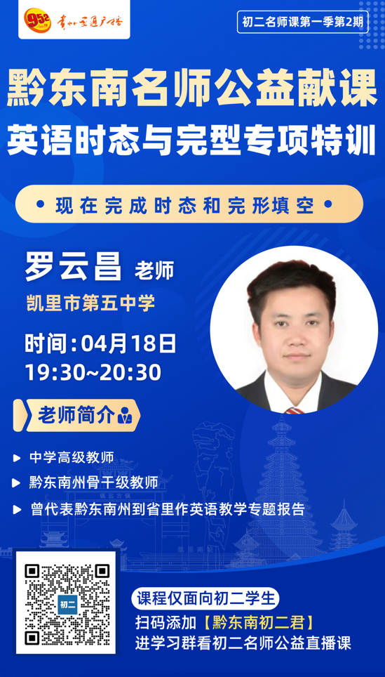 • 初二学子:扫码添加【黔东南初二君】,进入学习群获取直播入口,观看初二名师公益直播课