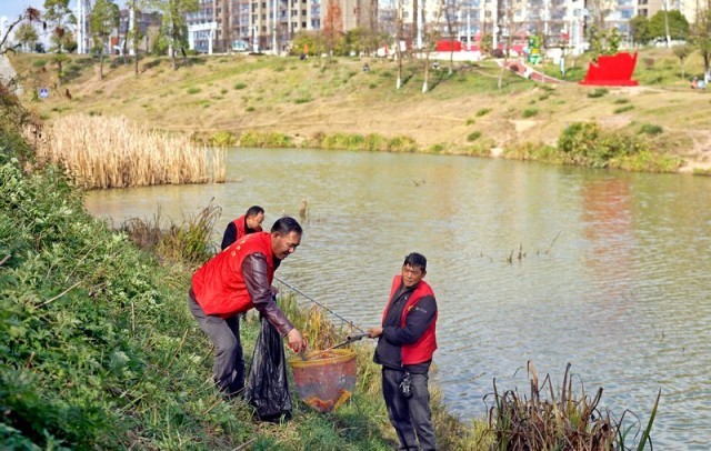 12月13日,纳雍县珙桐街道组织由“10+N”公益性岗位人员、干部职工、群众代表组成的巡河护水队开展清河行动,对白水河水域垃圾进行集中清理。