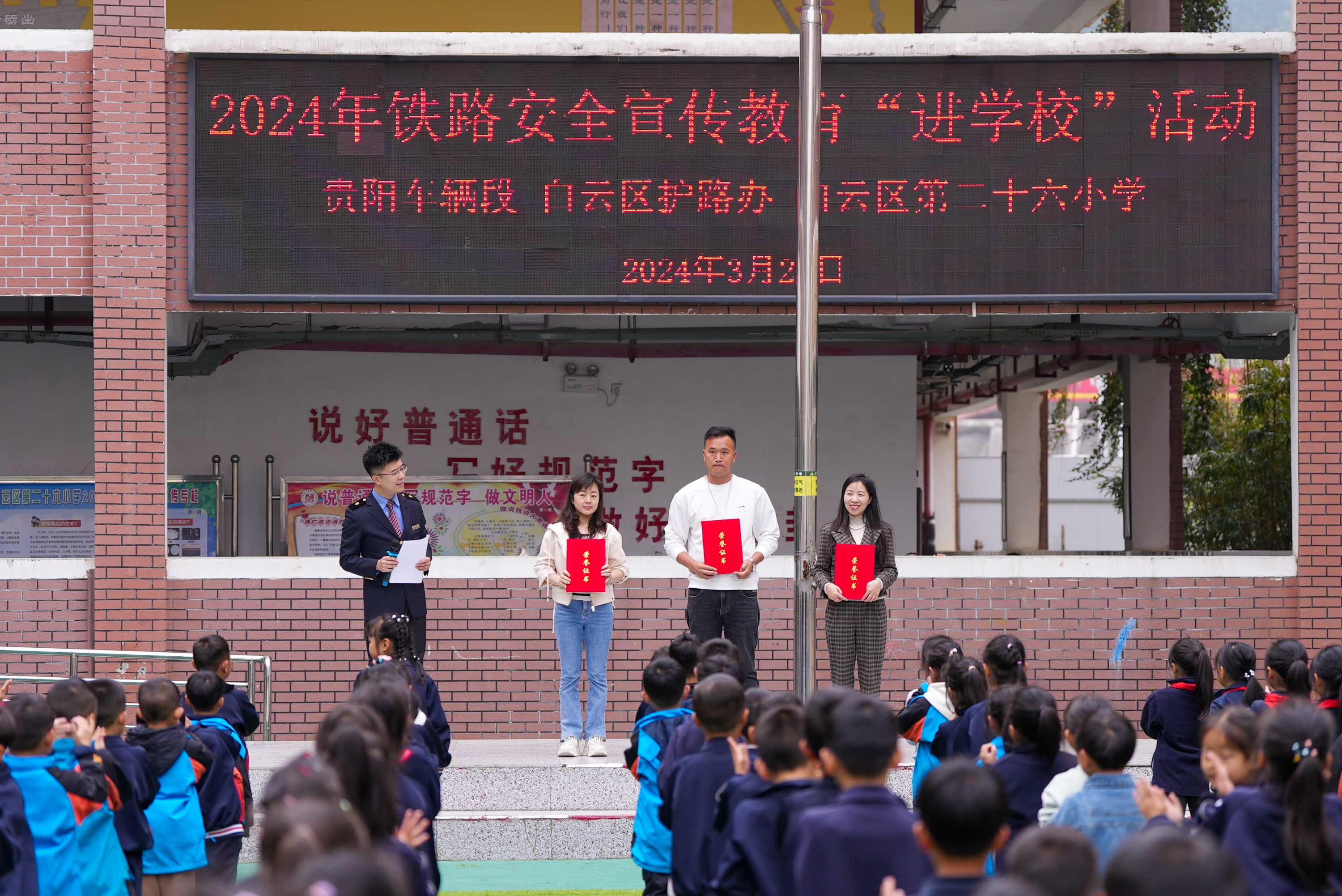 近日,贵阳车辆段团委联合贵阳市白云区护路办、贵阳市白云区第二十六小学、贵阳市第十二中学,开展了爱路护路宣讲活动。