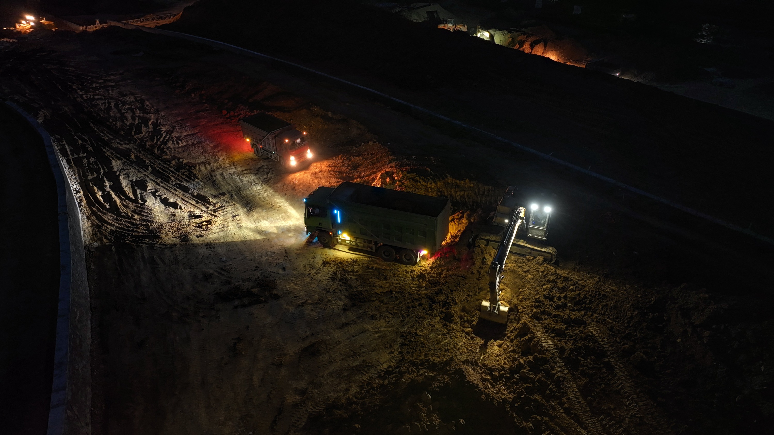 晚上8点,春天的夜晚微凉,但在枧坝镇黄鱼村高标准农田提质改造项目施工现场,依然是一派繁忙景象,在空旷的乡村,隆隆的机械轰鸣声与之形成强烈对比。施工人员正严格按照施工流程操作挖掘机、铲车等进行土方转运。受视线、施工环境等影响,夜间施工难度比白天更大,尽管如此,施工人员仍千方百计保证工程质量,确保工程项目稳步推进。