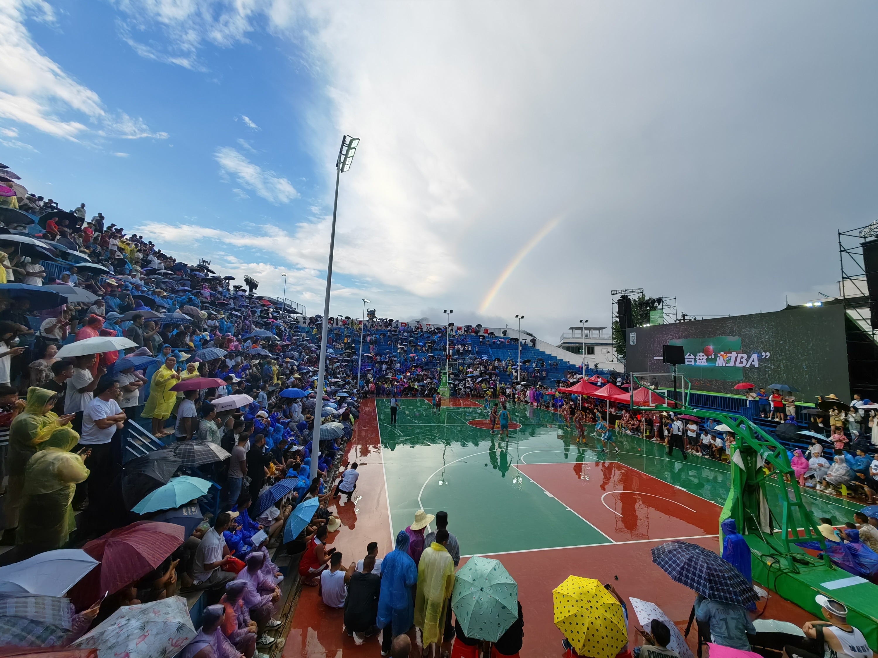 比赛当日,来自全国各地的众多游客球迷来到台盘村BA现场。中途的大雨也没有浇灭观众们的热情,场内依然人山人海,座无虚席,球迷观众们打着伞依然在坚守看球。一起来感受,总决赛现场激烈的氛围!
