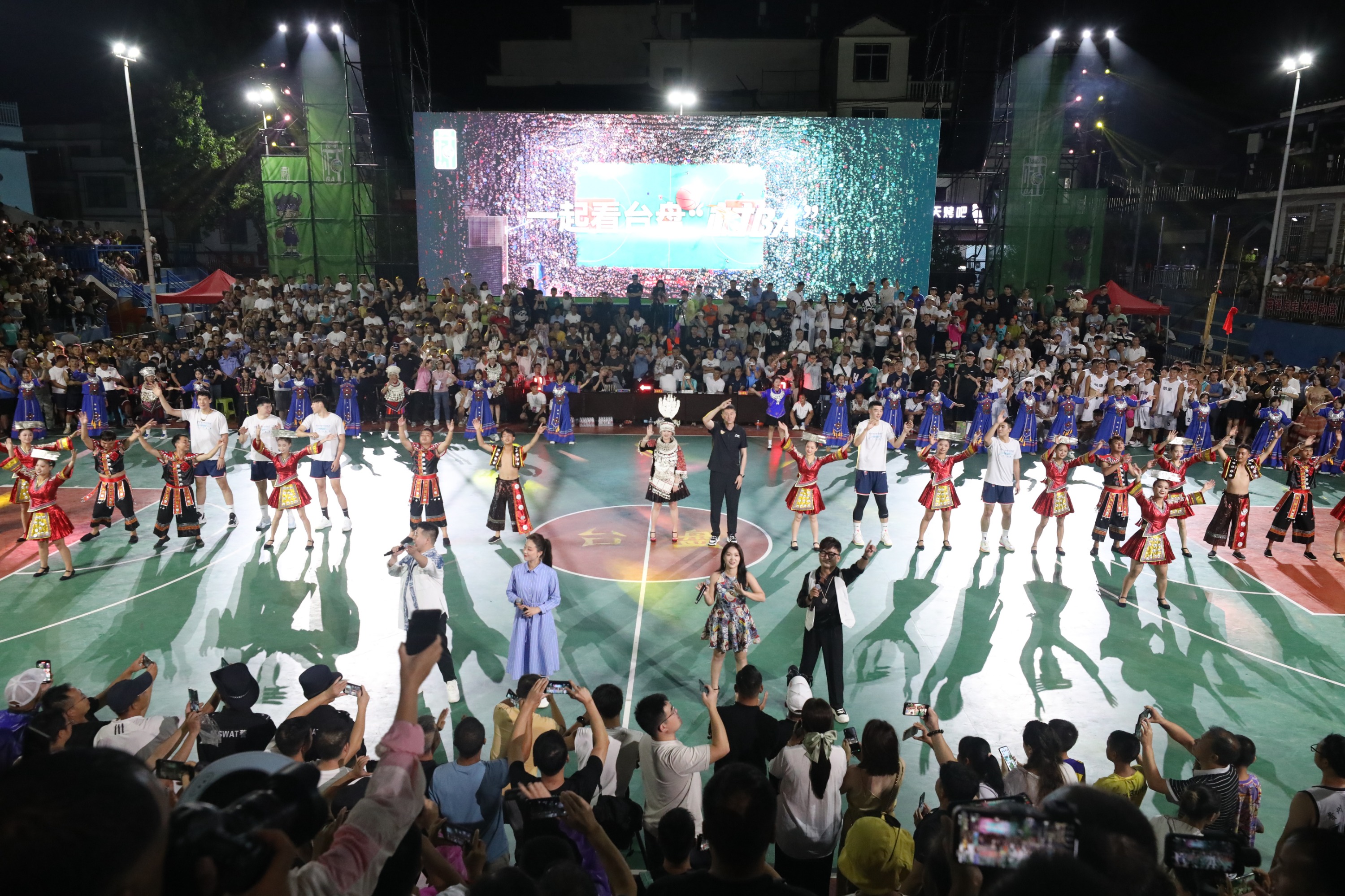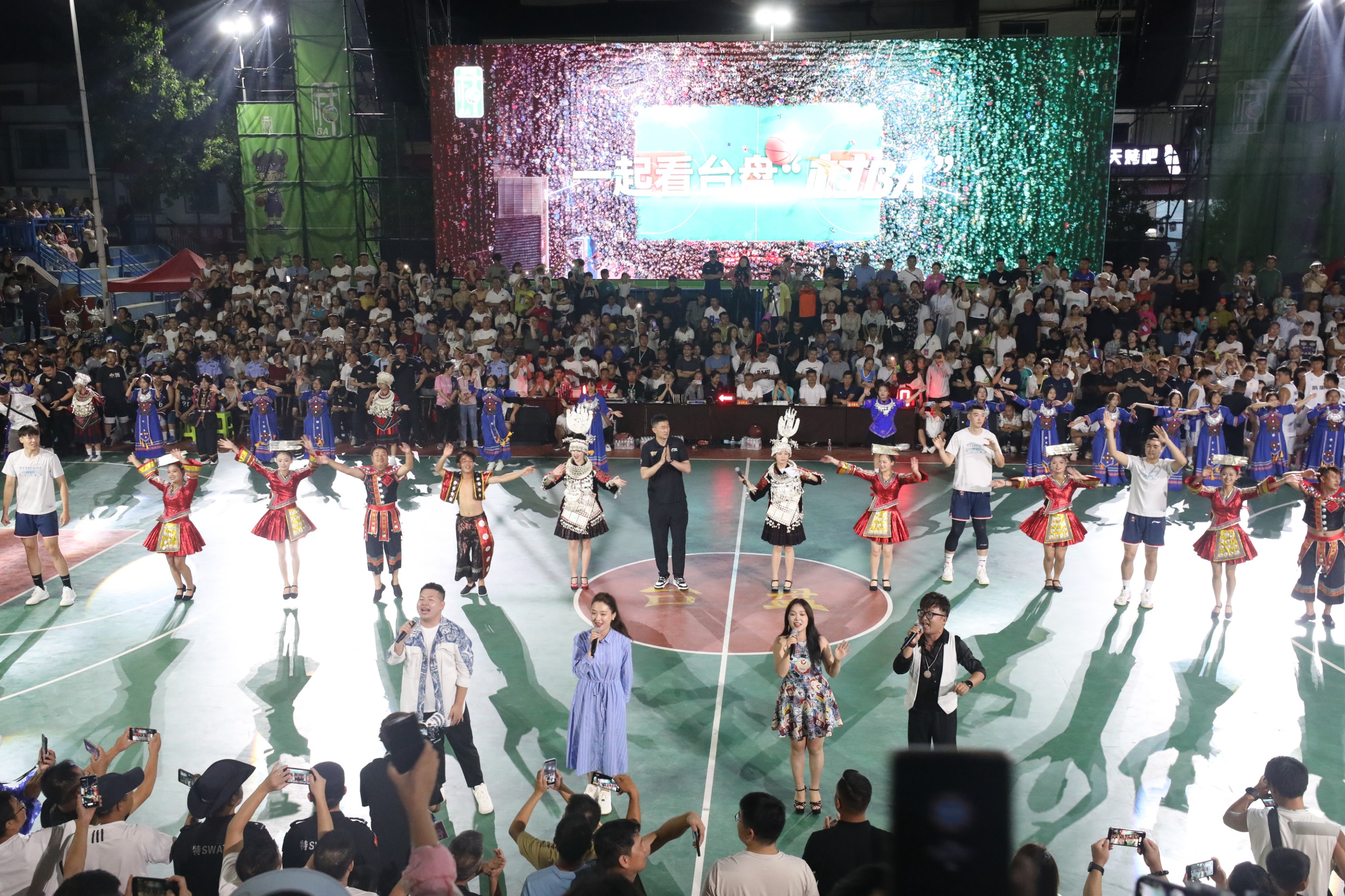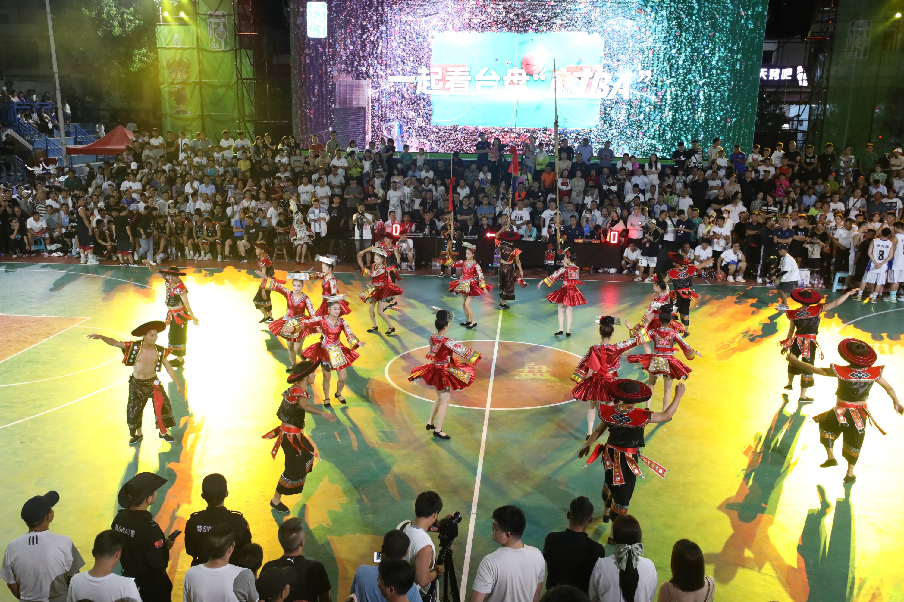 比赛间隙与球迷的互动是“村BA”的重头戏,也是备受观众青睐的。黄平县带来的《亻革家踩亲舞》展现了贵州的传统民族文化;从江县带来的《岜沙汉》表演,展示了岜沙苗族的独特民族风情和文化;杜锋指导一行还参与到《相亲相爱》歌曲演唱中,这也唱出了民族大团结;雷山县的《飞歌献给党》、台江县的《踩桥芦笙舞》、州歌舞团演唱的《追梦前行》等独具特色的歌舞展演,赢得了观众的阵阵掌声,这些表演节目也都展现了少数民族的热情和对幸福生活的向往。
