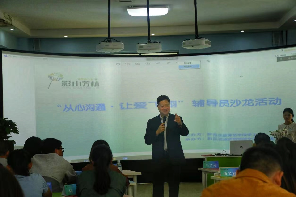 为全面贯彻落实习近平新时代中国特色社会主义思想,深入学习领会党的二十大精神,准确把握内容体系和内涵实质,不断提升思想政治工作质量,推动党的二十大精神融入辅导员工作各方面,为党育人、为国育才。4月21日下午,黔南民族师范学院学习宣传贯彻党的二十大精神辅导员专题研讨班第二讲暨幸福护航辅导员沙龙之“沟通从心开始”在辅导员培训中心举行,校党委副书记黄明辉参加并致辞。