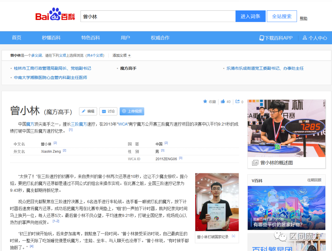 包括三阶魔方前国家记录保持者、