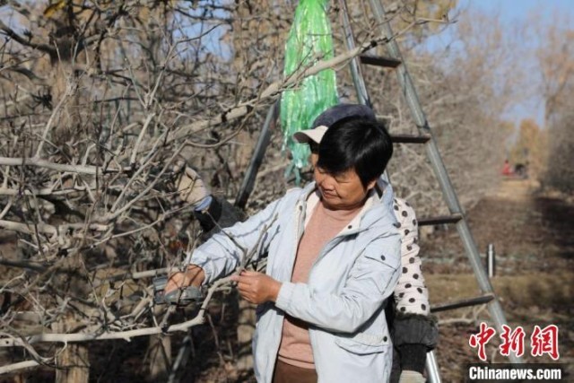 为实现生态建设的可持续发展,谢小云又在经济林上下功夫,对全团的梨园进行技术改良。时下,正是香梨树的修剪时节,谢小云穿梭在种植户的梨园中进行技术指导。