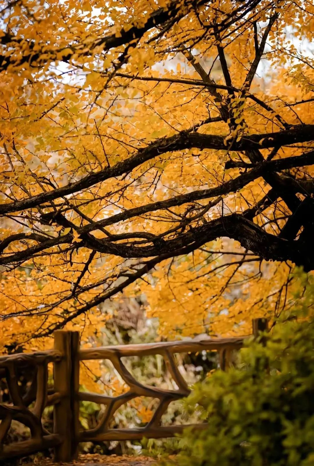 走上台阶,就掉入银杏树给的怀抱。在背后皆是银杏的风景里,我不敢想象这会有多浪漫。浪漫不止是它的代名词,金黄不只是它的颜色,也是众人对白岩的记忆。