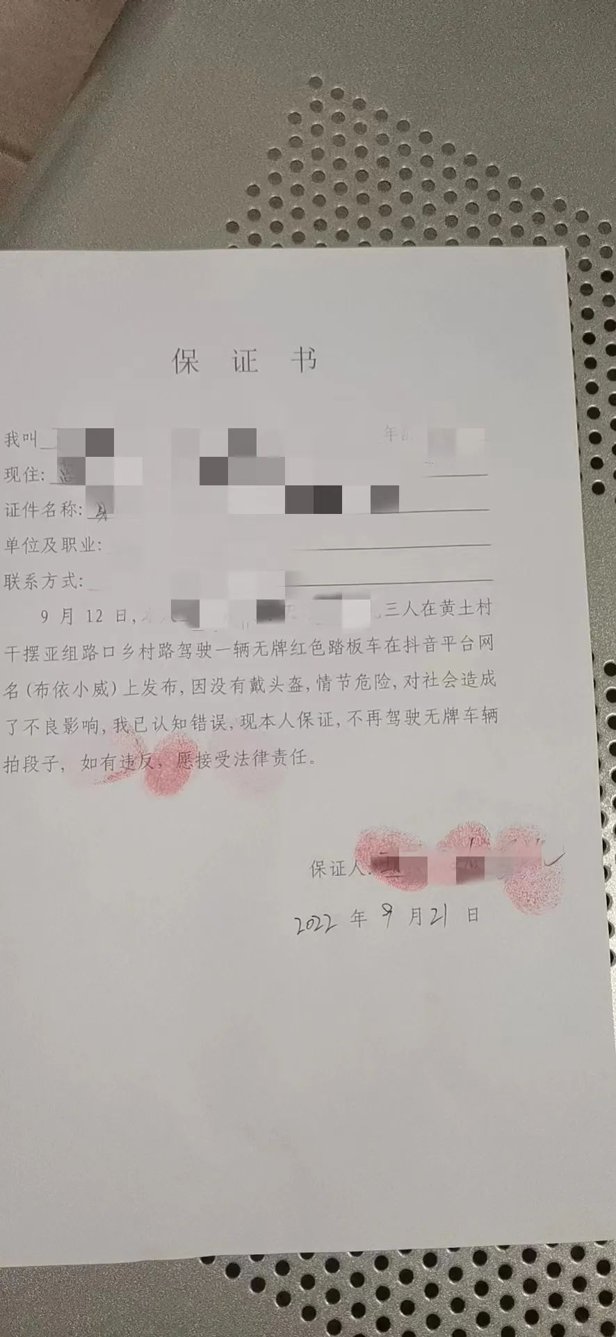 经民警批评教育,驾驶人王某、乘车人余某、罗某三人深刻认识到了视频中的行为存在的安全隐患和造成的不良影响,并当场写下保证书,表示今后将自觉遵守交通安全法规,安全文明出行。