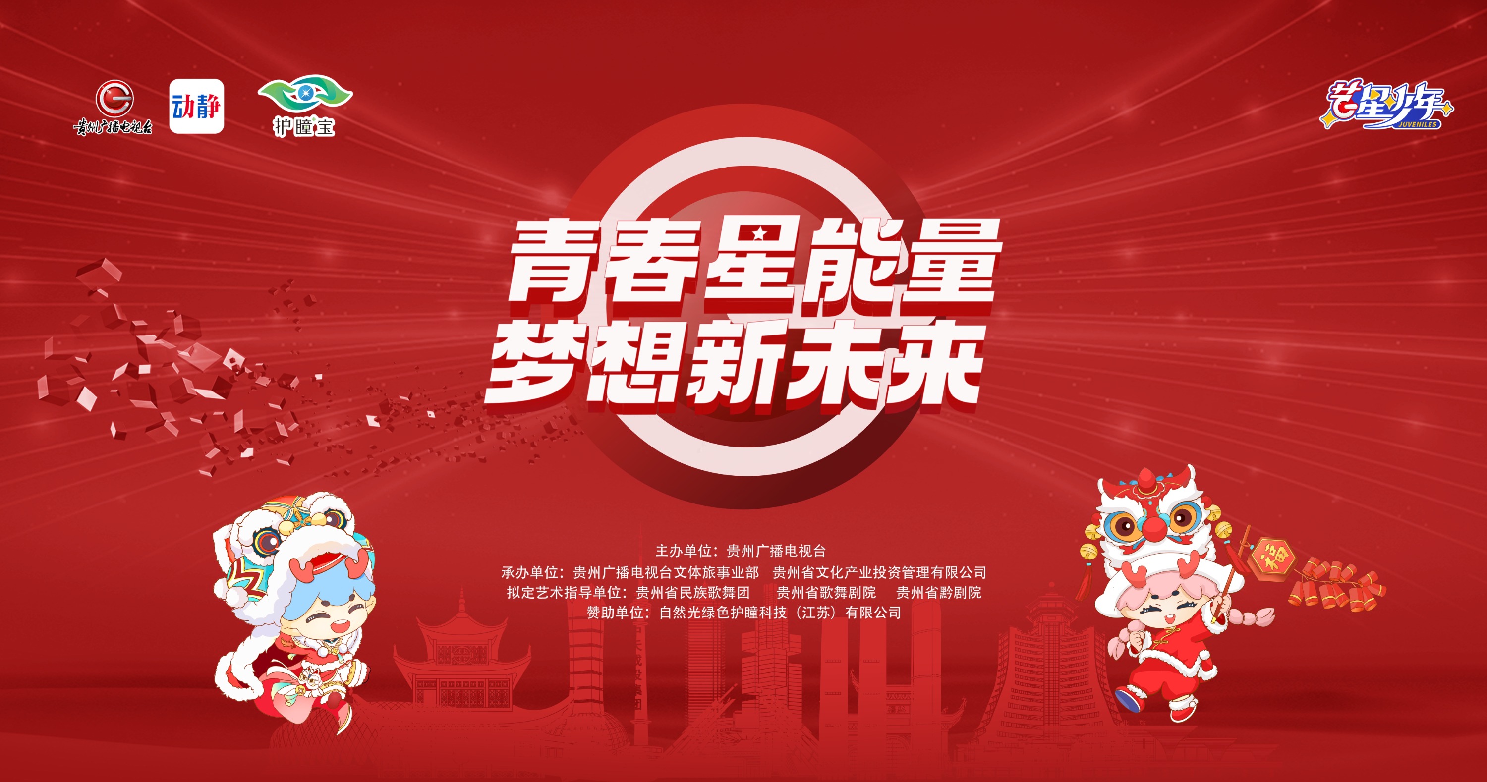 本次艺星少年·2024贵州省少儿春晚,将以新鲜独特的创作视角、别具特色的表演形式,为广大青少年重装打造、精心编排荧屏盛宴。为喜爱表演、喜欢舞台的少年儿童搭建一个属于他们自己的梦想大舞台,让爱好艺术、喜欢艺术的孩子们传递出新生代的正能量,表达出全省少年儿童积极、健康、向上的精神风貌。