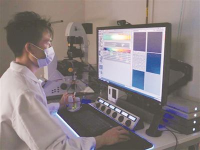 研究人员使用共聚焦显微镜研究细胞行为。